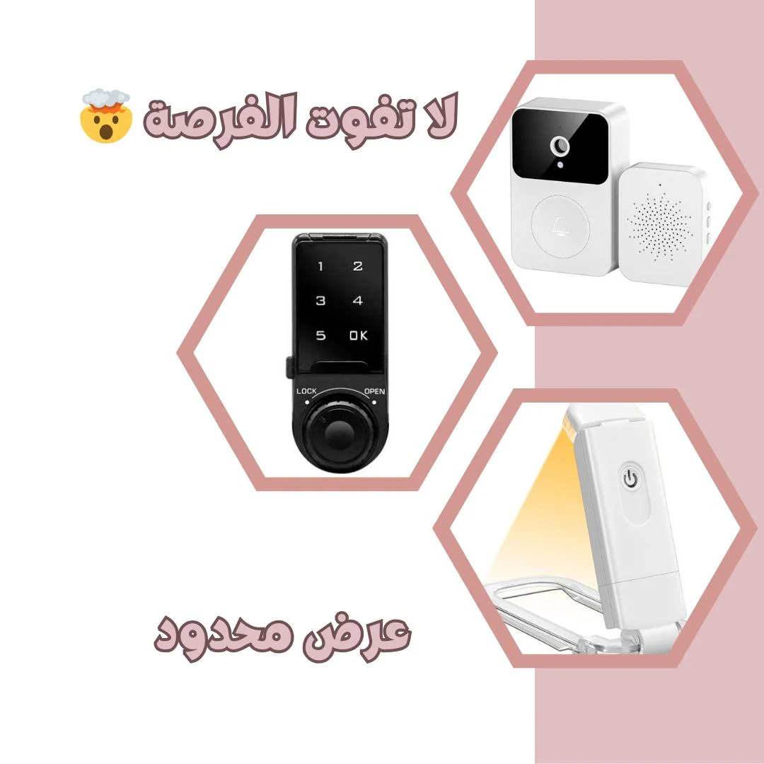 اللي تجمعلك 3 ضروريات في حياتك اليومية: قفل ذكي يحافظ على خصوصيتك 🔒، جرس إلكتروني يعرفك بكل زائر 🔔، ومصباح عصري يزيد تركيزك 💡.
